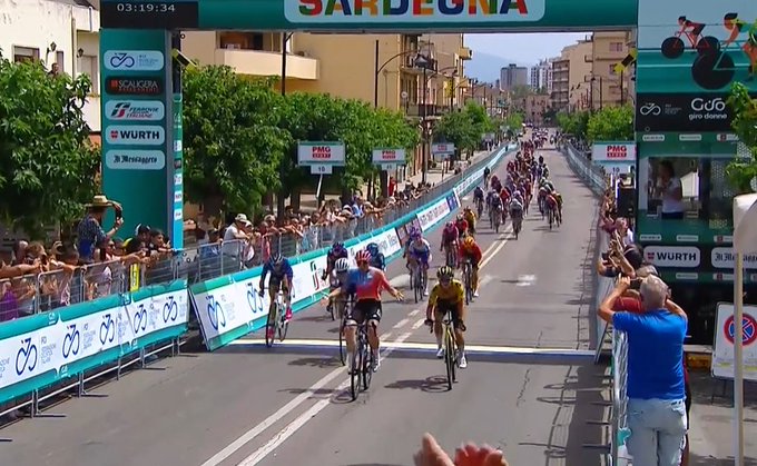 Heading into the finale, Alessia Vigilia was dangling out in front of the bunch but with 5km to go her day was done. As the sprints opened up it was Chiara Consonni who proved the quickest.