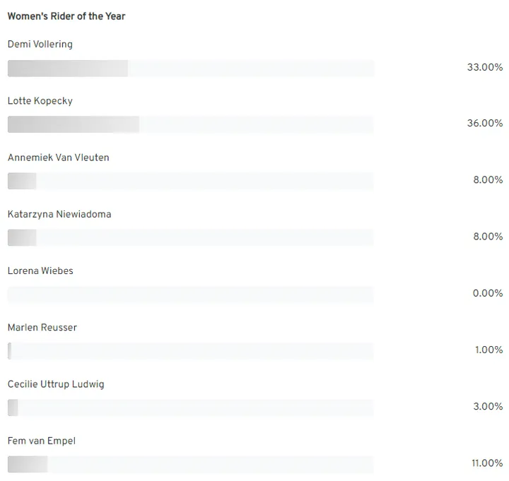 Fem van Empel fought off a close fight from both Annemiek Van Vleuten and Katarzyna Niewiadoma with just three votes separating all three riders.