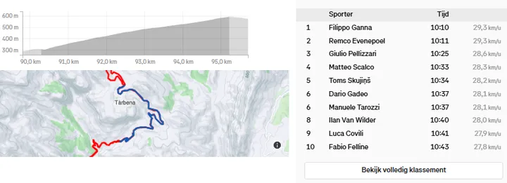 The climb is around 5 kilometers long at 5.6%, characteristics that are very similar to the Cipressa ascent. Ganna is a rider who has in the past finished second in 2023 - where Mathieu van der Poel won, but the