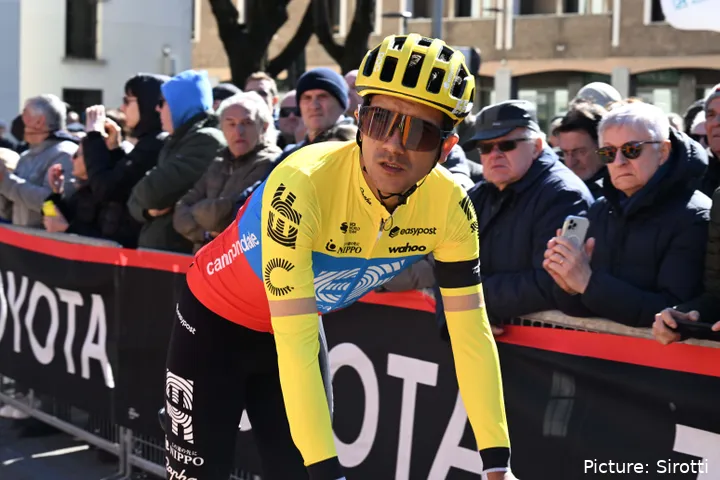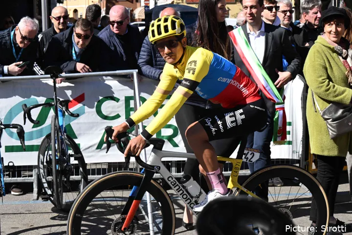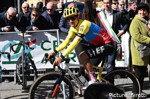Pictures captured by Sirotti have revealed his new colours at the start of the Italian race. A pan-flat day in the peloton, it was never suited to his abilities, but the Olympic Champion is looking to gather some race rhythm before aiming his sights at the Volta a Catalunya where he finished second last year.