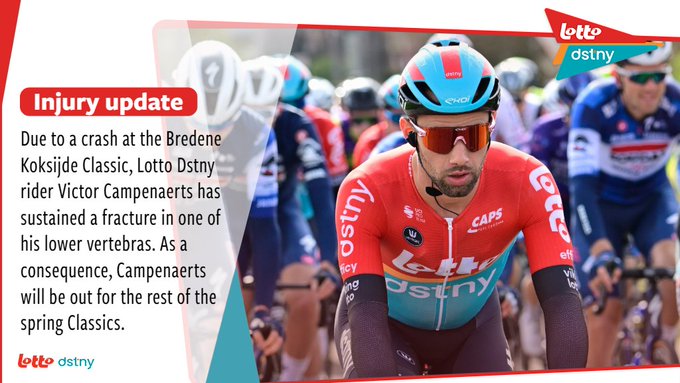 Victor Campenaerts has ended his spring campaign yesterday as he crashed out of the