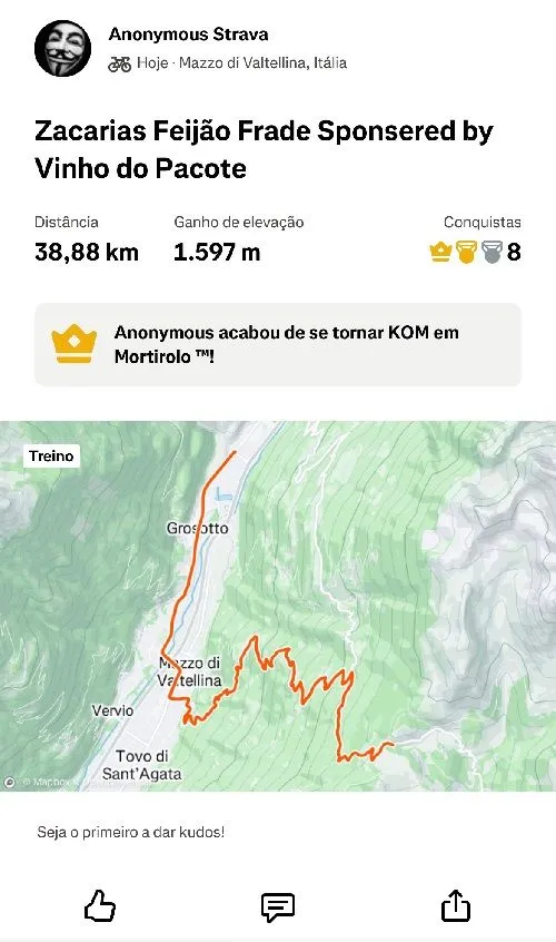 However, the idea of showing his worth on a digital training record platform might not be the best ticket for Jack to prove his worth on the World Tour, because in the world of high-performance cycling, it's well known that the technique acquired since cycling school is an increasingly appreciated step and the power and VO2 Max tests carried out in high-performance laboratories (and of course the results obtained by the athlete even in competition) are the real entry ticket to a World Tour team. Anything else could always be subject to suspicion or accusations of data manipulation by the general public. In this particular case, a Portuguese Strava hacker actually managed to beat all of Jack Burke's records/KOMs yesterday. The Portuguese user called "Anonymous Strava" from Lisbon beat Jack Burke's times from home and even joked about it by giving the training activity a suggestive title, "Zacarias Feijão Frade Sponsored by Vinho do Pacote".