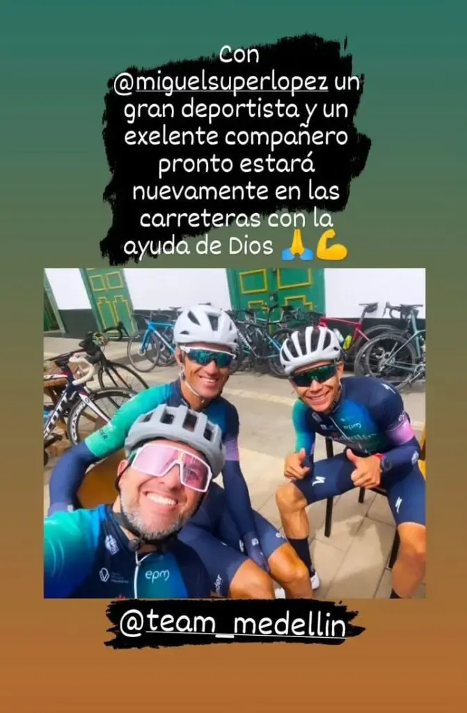 Miguel Ángel López with a big smile, conveying an optimistic attitude. But beyond the image itself, it is the message of support shared by Danny Osorio that has resonated. "With Miguel Angel, a great athlete and an excellent teammate, he will soon be back on the roads with God's help," Osorio expressed in the publication. These words reflect the confidence that the Colombian team has in López's return to the cycling scene.