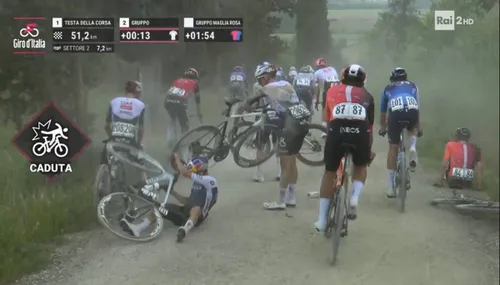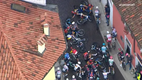 In the first week we've had also a very marking moments on stage 6 where there was a massive crash that featured dozens of riders. This led to the stage's time and points to be neutralized. Mads Pedersen, Richard Carapaz were among those involved, and the chaos marked the first week a lot.
