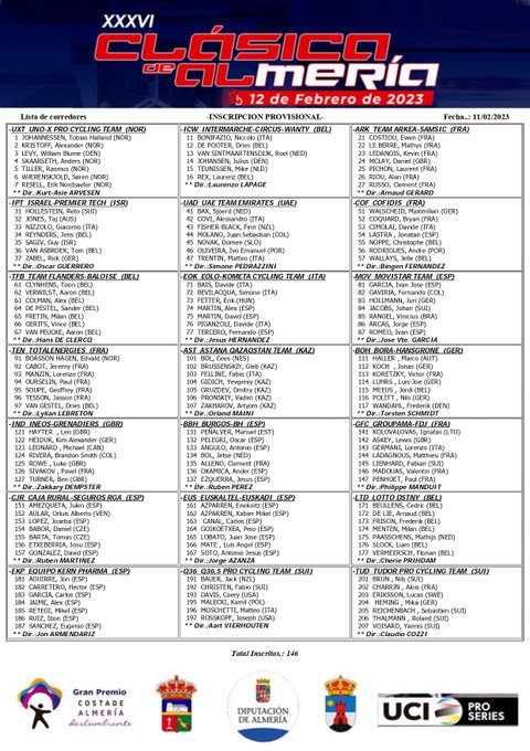The race will feature 191 kilometers with a hilly start that can make for some selection. It's a hilly first half of the day, however most signs point towards a more controlled race which should go down to a sprint eventually in Roquetas del Mar.