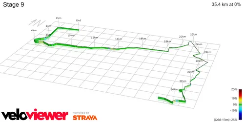 There is a hilly, a mountainous and a flat time-trial. This one is the latter, but also the longest. The roads will be completely flat from start to finish however not perfectly straightforward. There are a few tricky corners throughout the course however as long as riders take precaution crashes shouldn't be a risk.