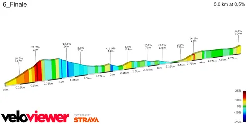 A brutal little Italian ascent where attacks can come. Fatigue will be set in at this point and all over the place, differences can be made. This comes with only 4 kilometers to go. A small descent follows, but we still have some uphill gradients in the final kilometers including a false-flat ramp to the line.