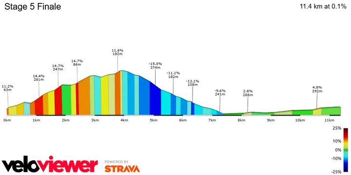 The climb ends with only 7.5 kilometers to go and the descent will go by in a flash, it is very steep and not very technical, meaning gaps will open up quickly. The final 4 kilometers will then be flat (with a slight uphill ramp entering the final kilometer) but not technical, so it's still possible to conduct a chase. All-in-all, a stage designed for some chaos.