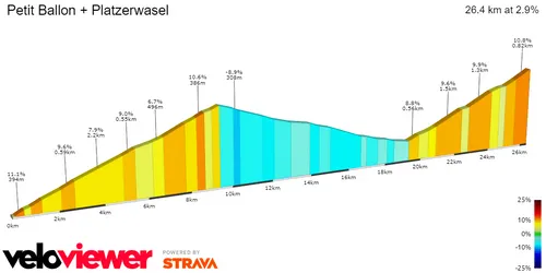 The riders will only have a very short and fast descent before the final climb of the race which is the Col du Platzerwasel, 7.1 kilometers at 8.4% which summit very close to the finish at Le Markstein, to conclude the battle for the yellow jersey. The summit of the climb comes with 7 kilometers to go, from there on the riders follow a plateau into the finish.