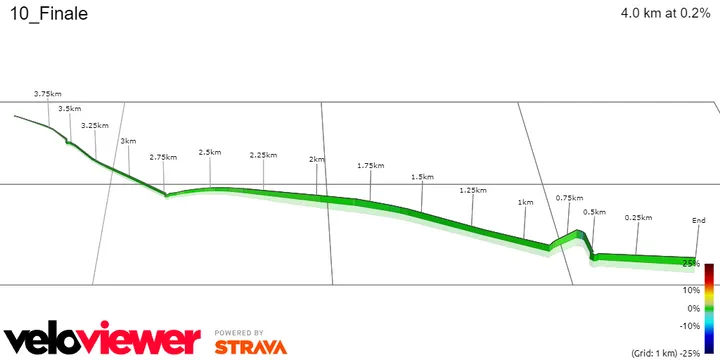 This one will be quite regular but with a special feature added. It will be a very fast sprint but in order not to have a completely straight line, organizers created a small obstacle in the final kilometer. Three slight corners, from 850 to 500 meters to go. Then full speed to the finish line.