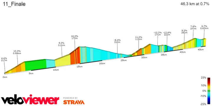 It is a transition day, well suited to a breakaway however with a flat start that certainly won't make it easy. 211 kilometers on the bike will make it a long one, with a difficult finale where the climbers and classics riders will come to the front. If the GC men find an opening, the fight could easily explode in such terrain.