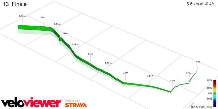 With 43.5, 38.5 (1.6Km; 6.1%), 30 (1.8Km; 6.6%) and 24.5 (0.8Km; 6.6%) kilometers to go there is the summit of four small ascents, all in quick sequence. This can serve for a few teams to really push the pace hard - if they do, a few sprinters can certainly be dropped - but also for attacks to come off the peloton with an hour of racing left. With high mountain stages ahead, this will be the last opportunity in a while for a few riders to give it a shot, so we cannot discard that possibility.