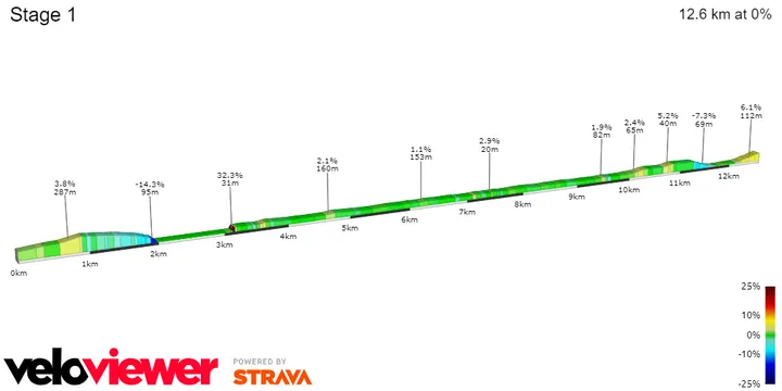 There isn't much to analyze from this day, it's a rather simple route fit for the powerhouse riders (the small gradients in the profile above feature an error at the start due to GPS data). 12 kilometers which are mostly without any corner that needs breaking, the final 3 kilometers do feature a few gradients which could see the riders saving up a bit, as the stage may be decided by mere seconds.