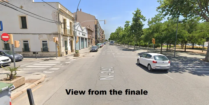 From there on there is a quick descent and the final kilometers and flat into Molins de Rei. There shouldn't be any meaningful leadouts, but if there is something there will be a tense finale, with several roundabouts inside the final 3 kilometers. The final corner is then with 1.5 kilometers, the final straight will make it difficult for lone riders to succeed.