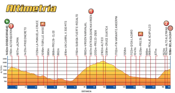 The fifth stage, with 165.5 kilometers between Dosquebradas and Belalcázar, will present another mountainous challenge. With the first category pass La Virgen-Quinchía Entrada at the halfway point and a second category pass near the finish, the climbers will have the opportunity to shine and look for an advantage in the general classification.