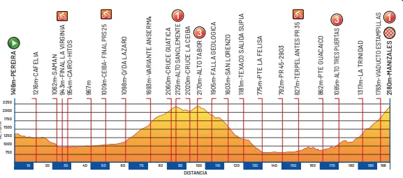 Stage 6, which will stretch over 164.8 kilometers between La Virginia and the second category pass of Apía, will offer constant climbs and descents. The high finish will be a real challenge for the cyclists, especially after the previous demanding route.