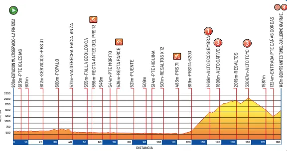 The penultimate stage, 179.7 kilometers between La Pintada and Túnel, will present a mixed challenge. The first part will be mostly flat, but then they will face a chain of one first-category pass, followed by two third-category passes before tackling the finish. A long descent and a climb to a fourth category pass will test the riders' legs.
