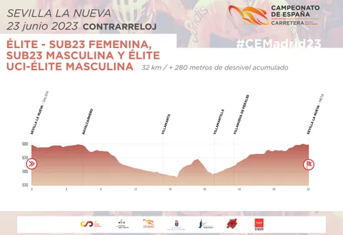 The three time trials on Friday will have the same route, 32 kilometers with 280 meters of elevation gain, starting and finishing in Sevilla la Nueva. It will be a route suitable for specialists, with a very fast start and a somewhat more demanding second half of the time trial, with several uphill sections where the strongest riders will be able to make a difference.