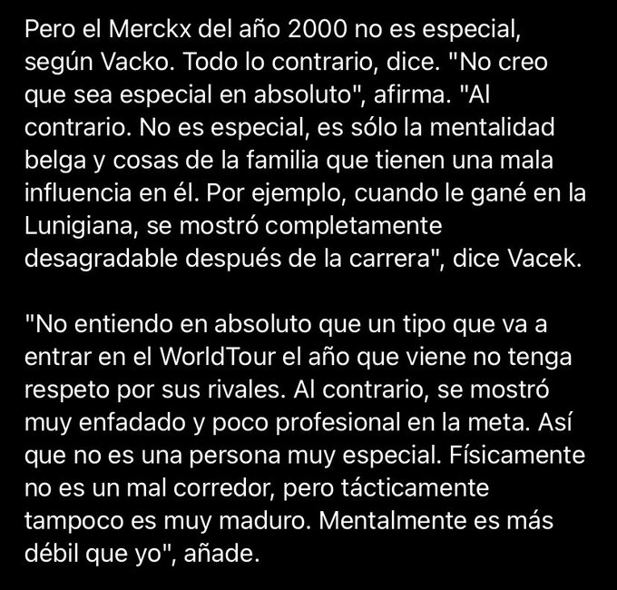 Precisely from that time there are statements by today's Team Corratec rider in which he put the Belgian back and a half. He told Ceska Televisie after stage 7 that "it's not special. When I beat him in the Lunigiana he was completely unpleasant after the race. I don't understand that a guy who is going to enter the WorldTour has no respect for his rivals."