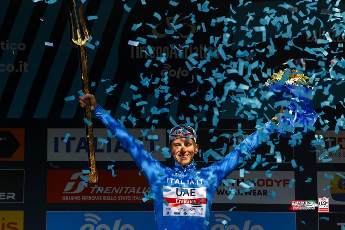 The real prowess came once the race reached the mountains though. Having won the hilltop finish in Bellante he took hold of the race lead, and on the next day in the steep hills of Fermo he controlled the attacks of Remco Evenepoel, albeit having