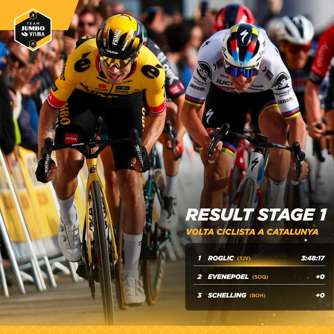 "I feel sensational, it's crazy, there are a lot of people, a lot of fans, enjoying a lot," Roglic said in a post-race interivew. "The guys did a great job and I had my legs at the end. Of course I want to win the Volta, but it's only the first day, but they're going to come six very hard days ahead".