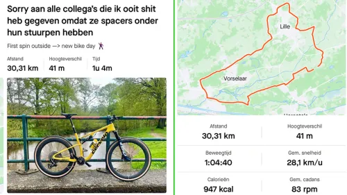 Now though, in the best sign yet for his recovery, van Aert has posted a 30km training ride to his Strava, completed in over an hour around the area local to his home. Van Aert also showed off a new, Cervelo bike that he was using but couldn't help himself from posting an apology note alongside the upload. "Sorry to all the colleagues I've ever given shit to because they have spacers under their stem," he writes.