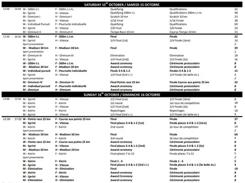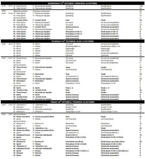 Below you can inspect the full schedule of events set for the week. On the women's side you will have the finals on the following dates and (CET) time: Scratch (12/10; 18:30)