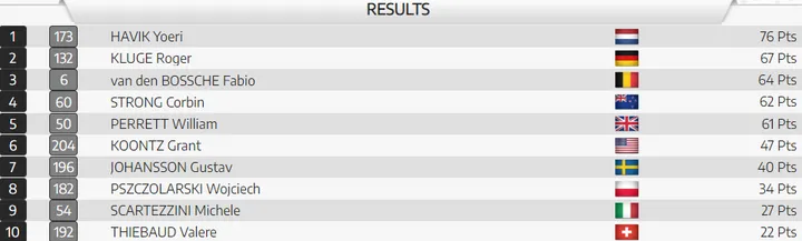 A 3 time national champion in the Points Race, Havik finally managed to conquer to cycling world with a thrilling victory, amassing a total of 76 points. With Havik taking the rainbow jersey, former Giro D'Italia stage winner Roger Kluge took the silver medal and Belguim's